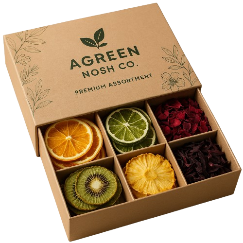 At Agreen Nosh Co, we specialize in crafting premium dehydrated fruit garnishes, edible flowers, and signature botanical blends that elevate every sip and plate. Rooted in quality, sustainability, and creativity, our products are carefully curated to inspire mixologists, chefs, and home enthusiasts alike. Based in Indore, Madhya Pradesh, we’re passionate about bringing nature’s finest elements to your table — naturally preserved, beautifully presented, and always flavorful.